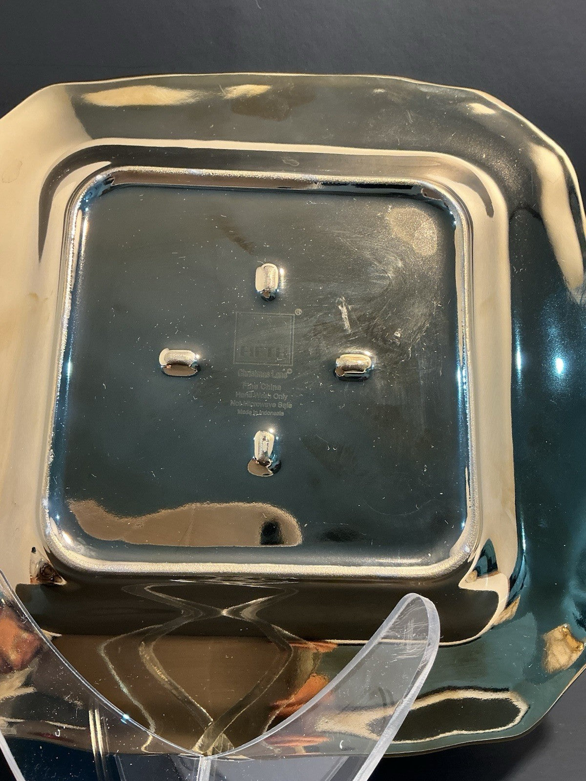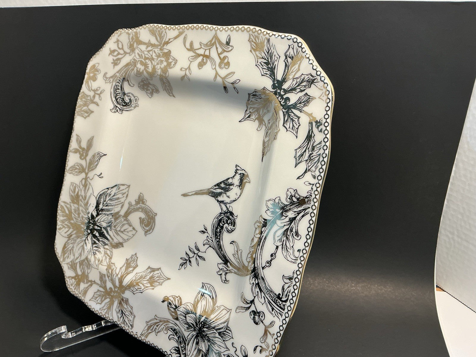 222 Fifth Adelaide Gold And White Square Dinner Plate 10.5”