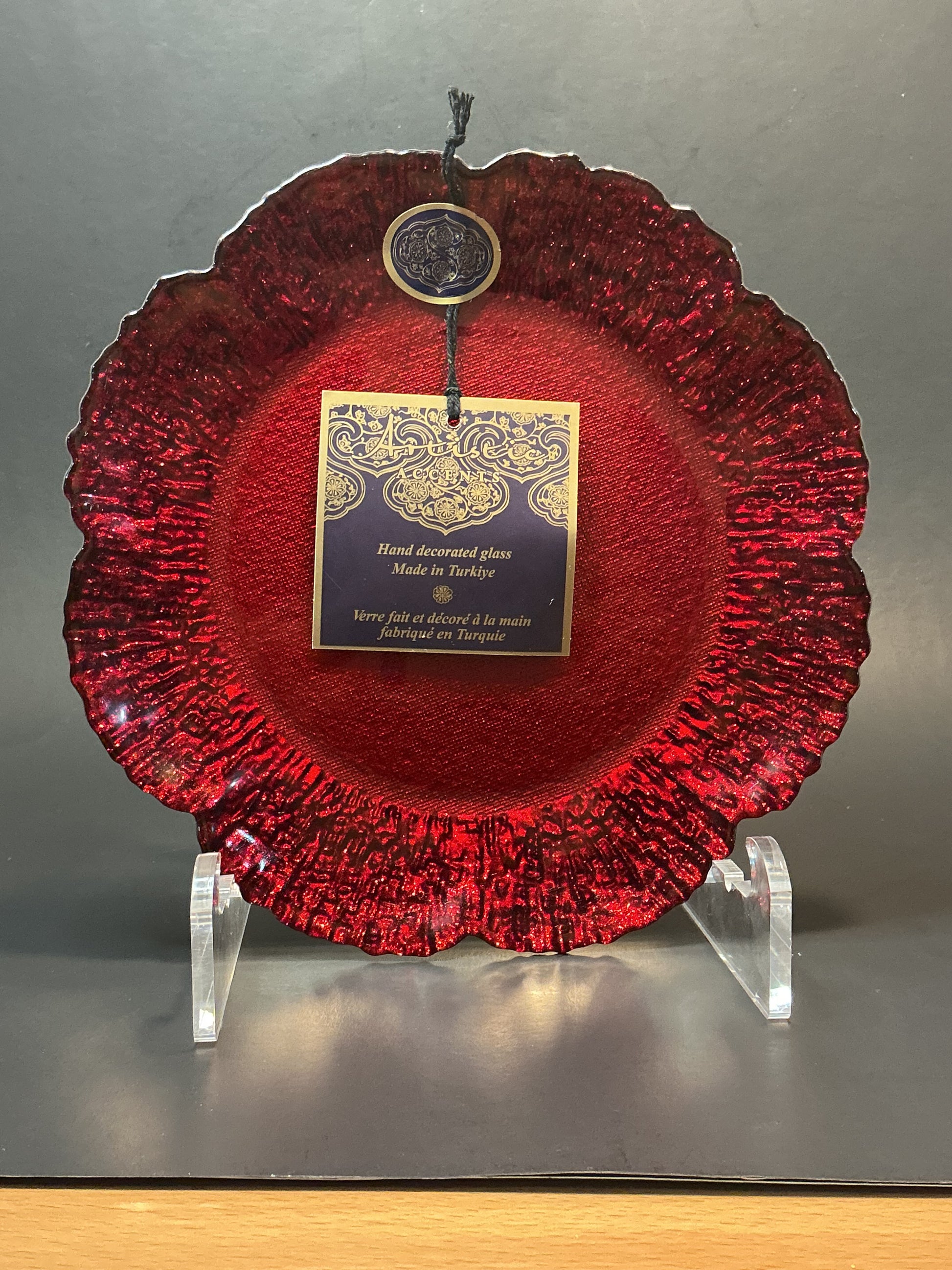 Artistic Accents Hand Decorated glass Salad, Dessert plate 8” Made in Turkey