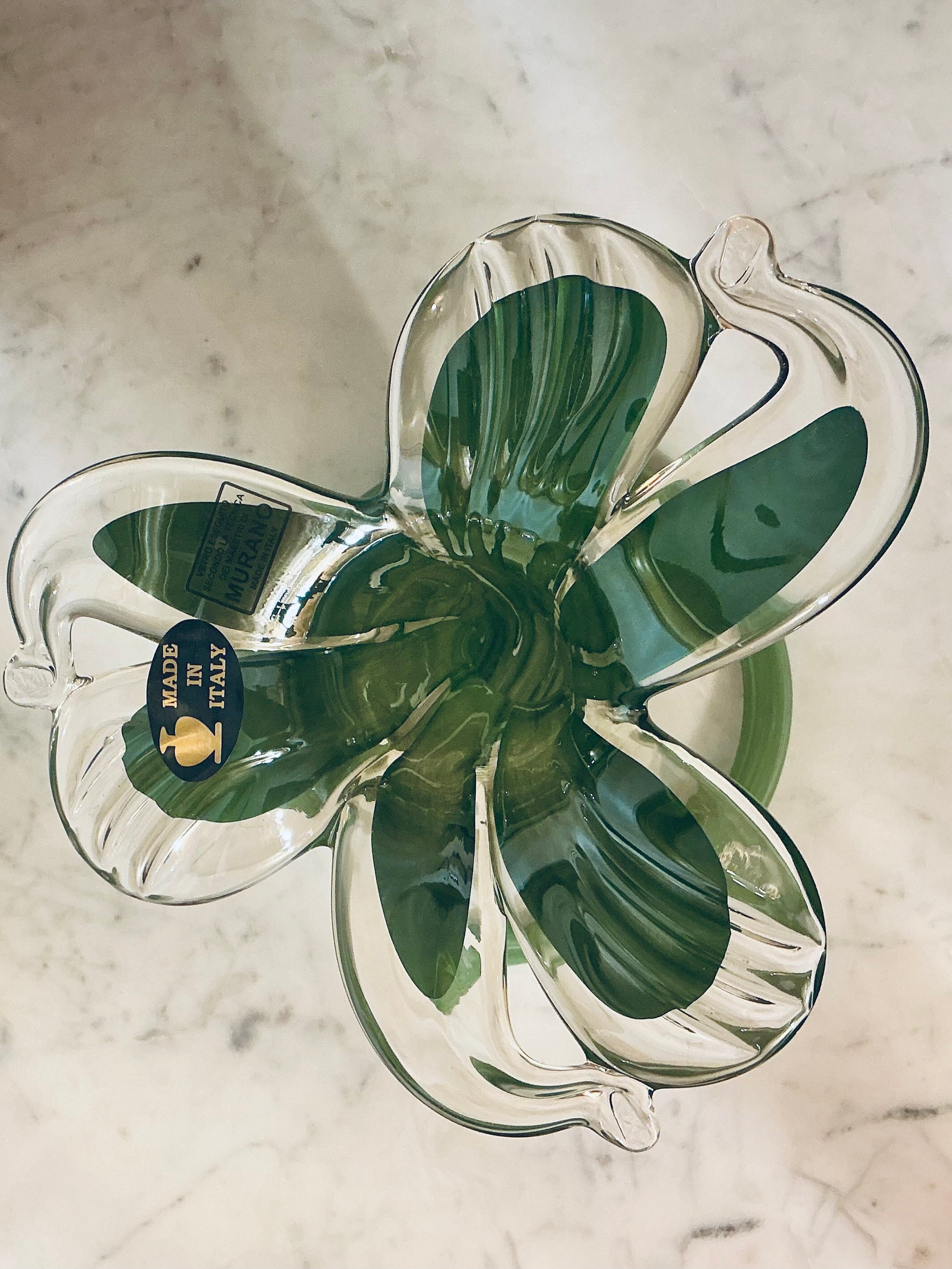 Murano Art Glass Green Stand Up Flower 6.6” Tall