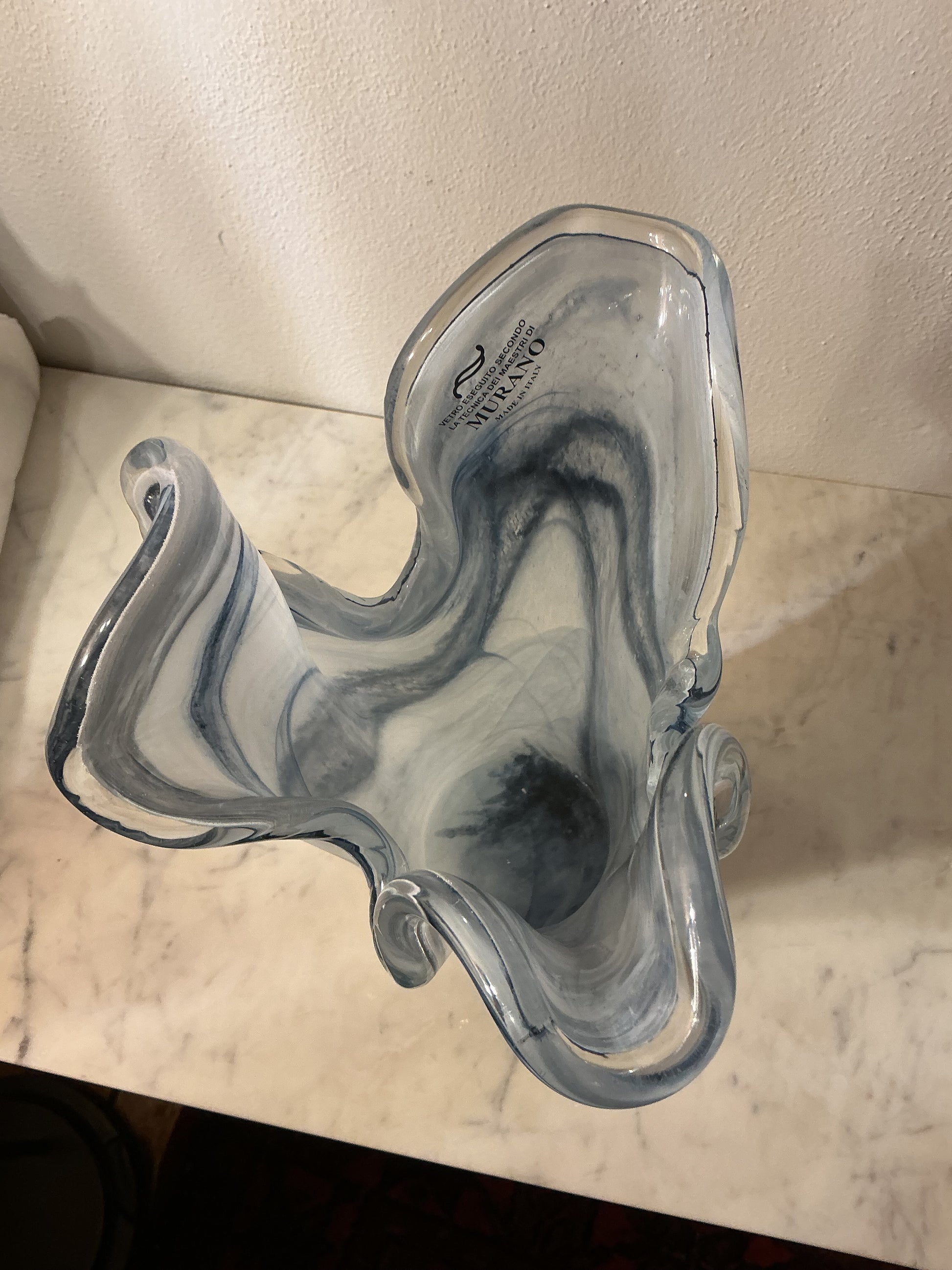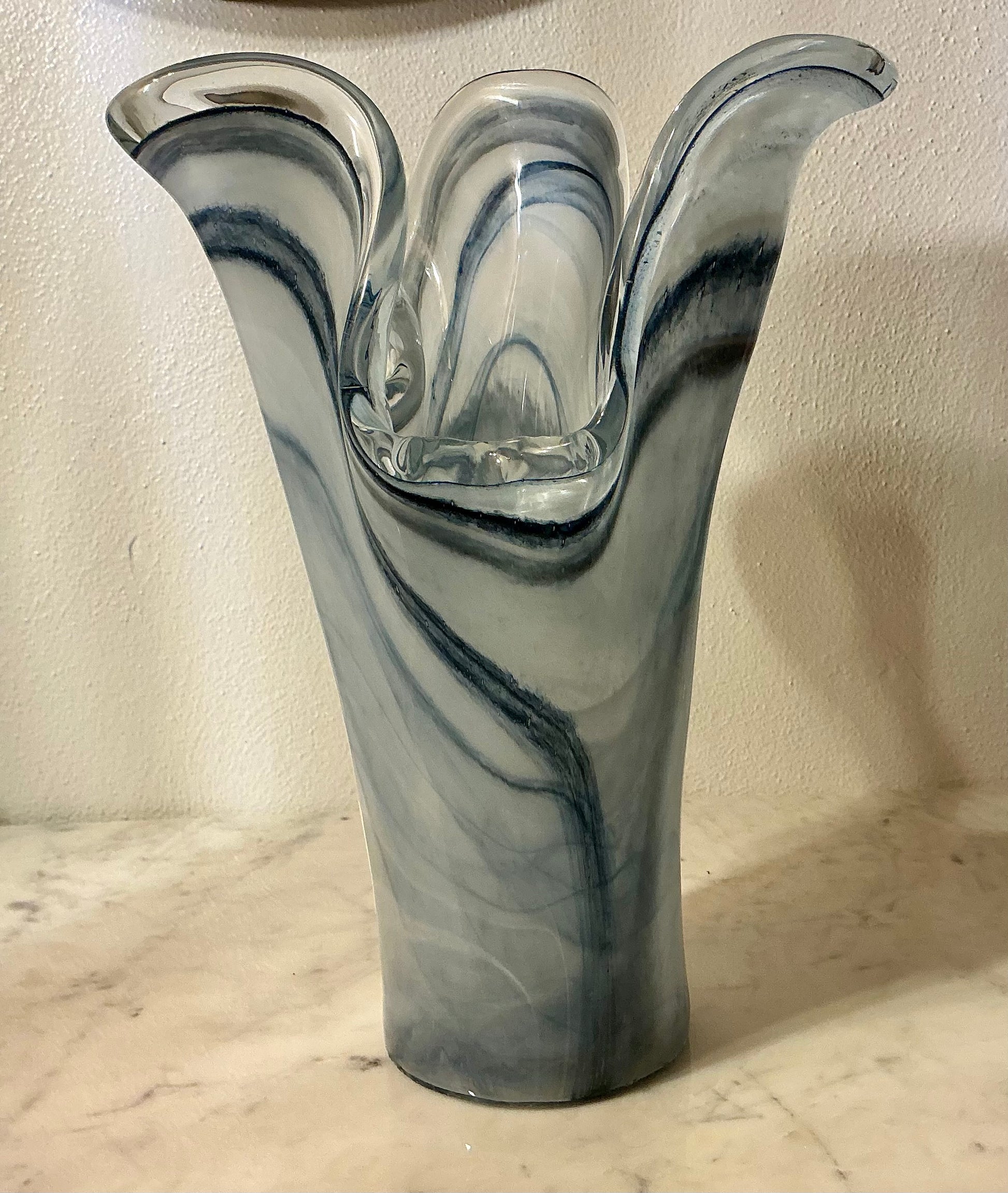 Murano Art Glass Vase Ruffled Blue 10.5”Tall Italy. Hand Blown