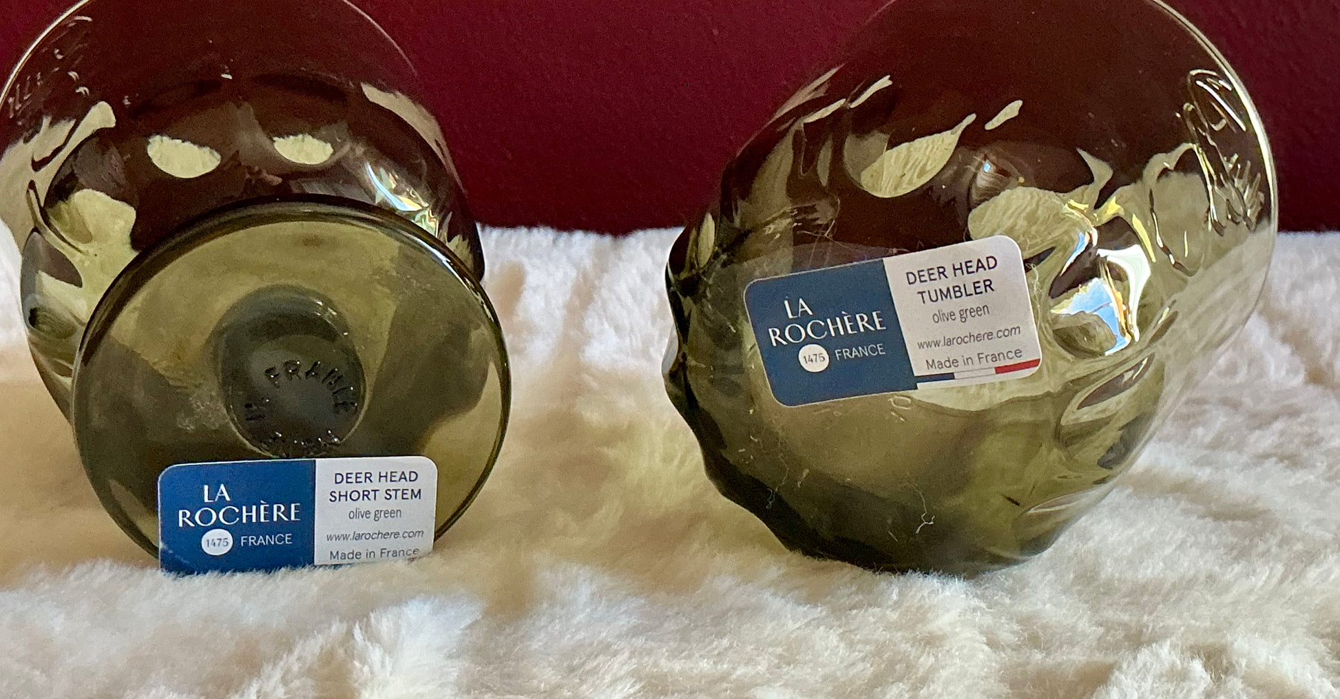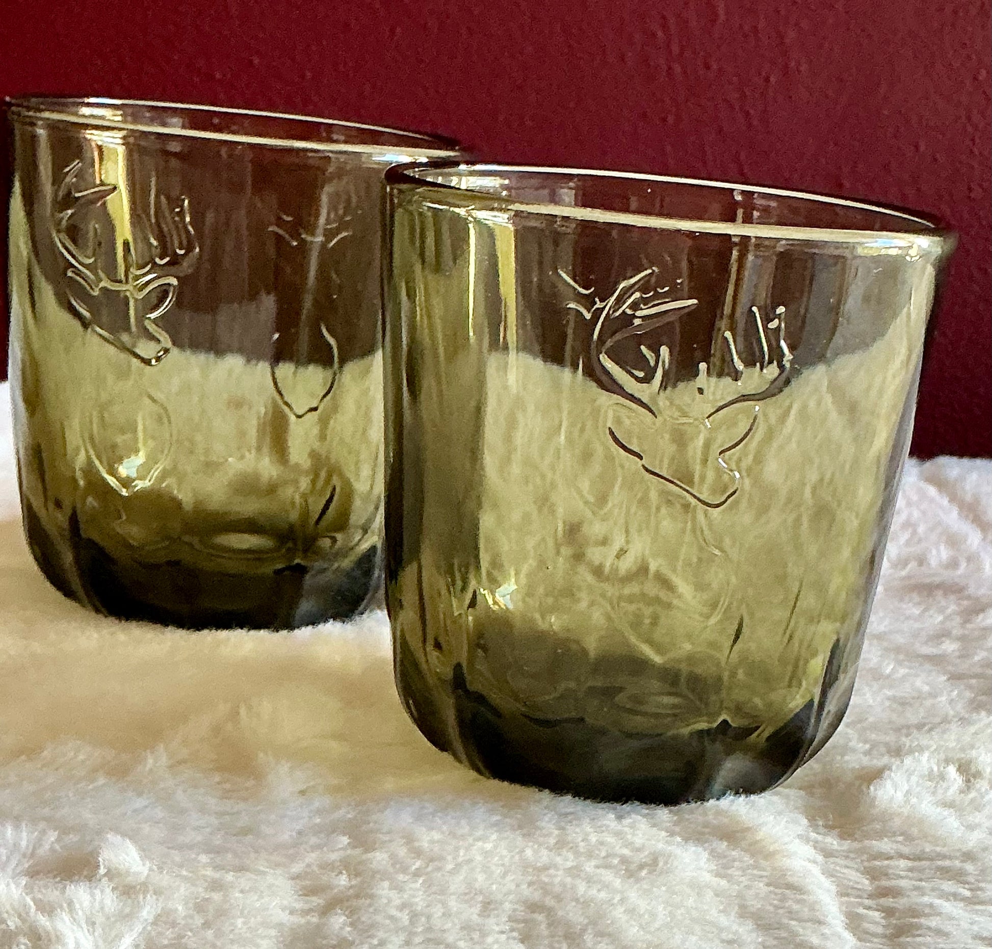 Set of 2 La Rochère Deer Head Whiskey Glass Tumbler 10.48 oz Olive Green